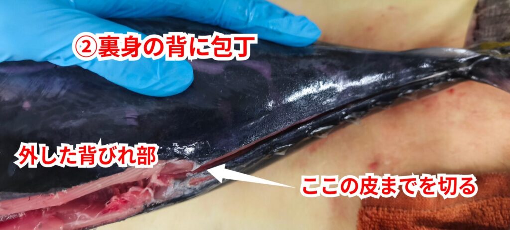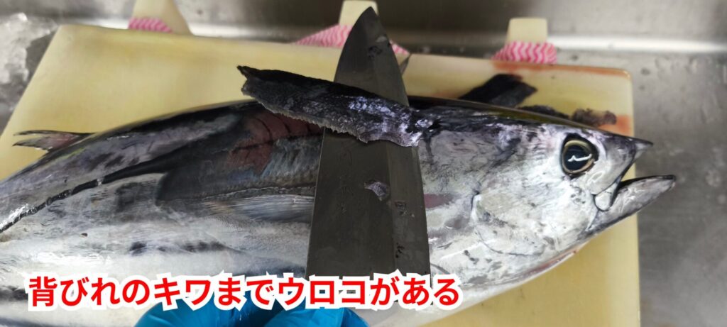 背ビレのキワまでしっかりとウロコが除けていれば、背ビレを外さなくても卸せます。