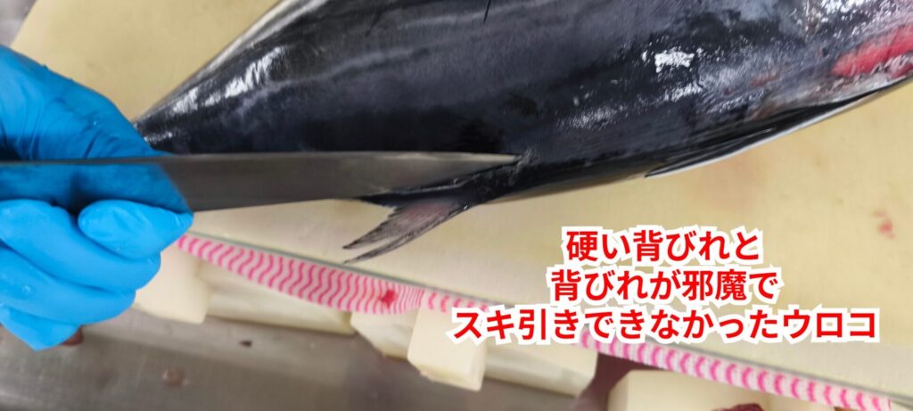 • 硬いウロコがある:頭側の皮にはバラ引きできない硬いウロコがあるため、スキ引く必要があります。
