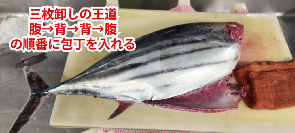 基本的には鯛みたいに三枚卸しだよ。水洗いの手順が少しだけ違うのと、身割れしやすいことは覚えておくといい。