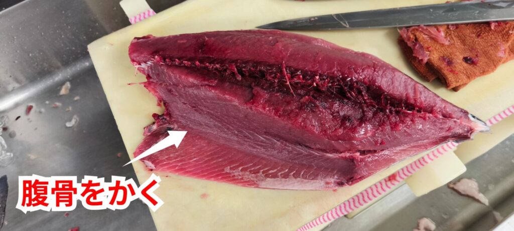 腹骨は柳葉包丁ですくいとるように意識すると、失敗を避けられます。