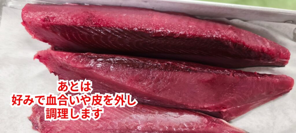 血合いも鮮度が良ければ臭みなく食べられますが、お客様の好みに合わせましょう。迷う時は血合いを除くのが正解です。