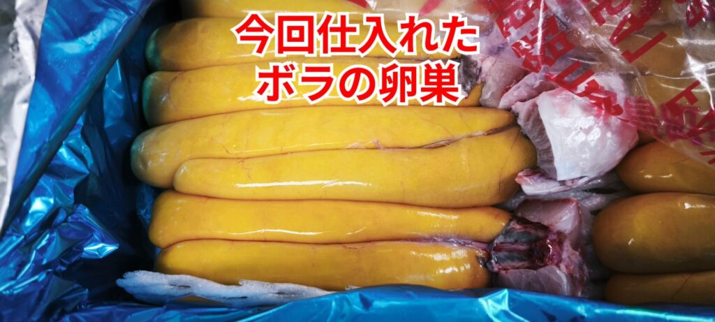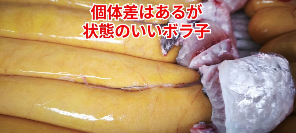 ボラ子の目利きとして、内出血がないもの、卵巣の薄皮の破れていないものを選びます。