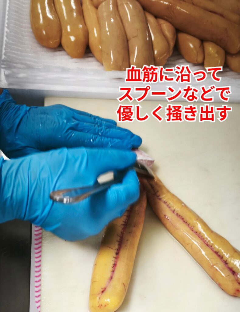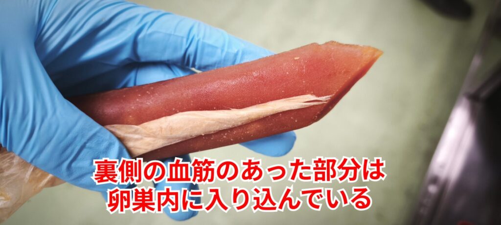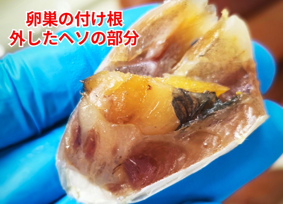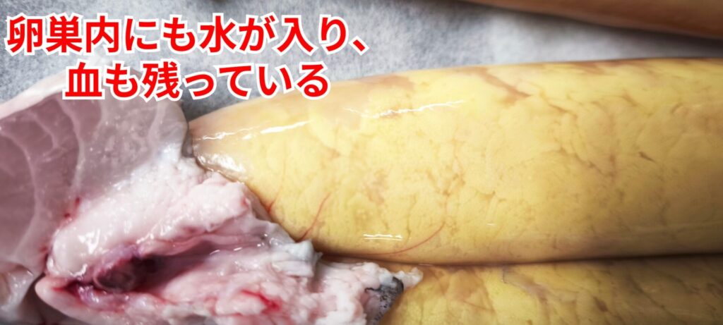 卵巣内の水分は、臭みがあり品質を劣化させます。