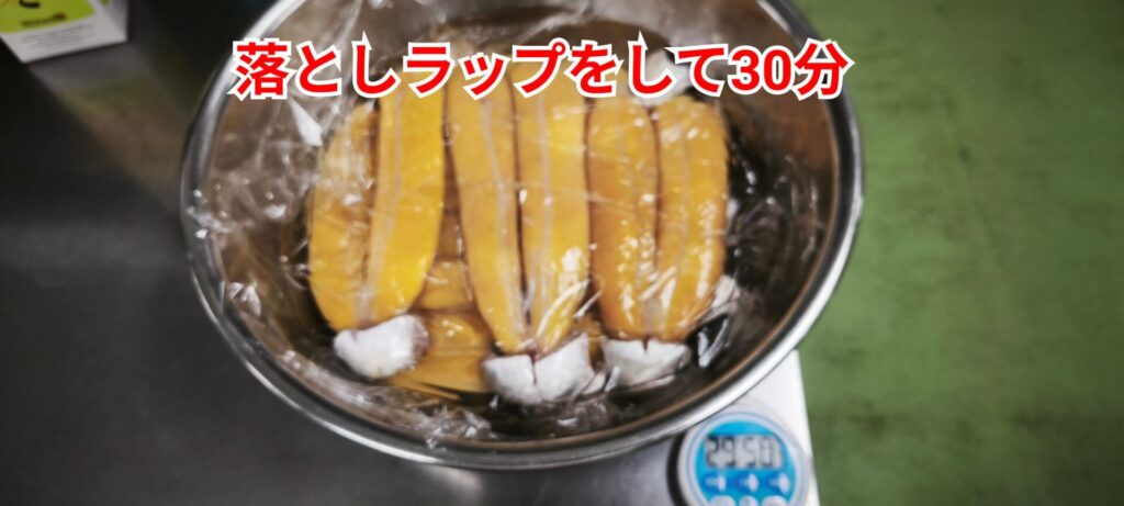 この塩漬けの工程は【3時間】です。誰が何度も繰り返しても失敗することはない。それが3時間です。
