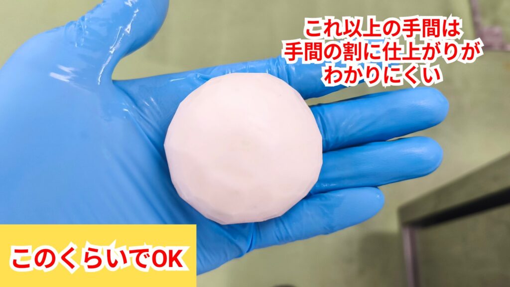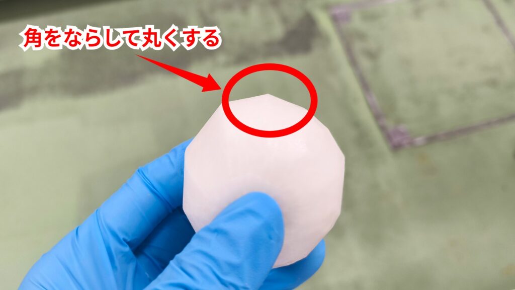 なるべく丸い方が美しいですが、手間対効果やこの後彫ることを考えれば多少の凸凹は問題ありません。