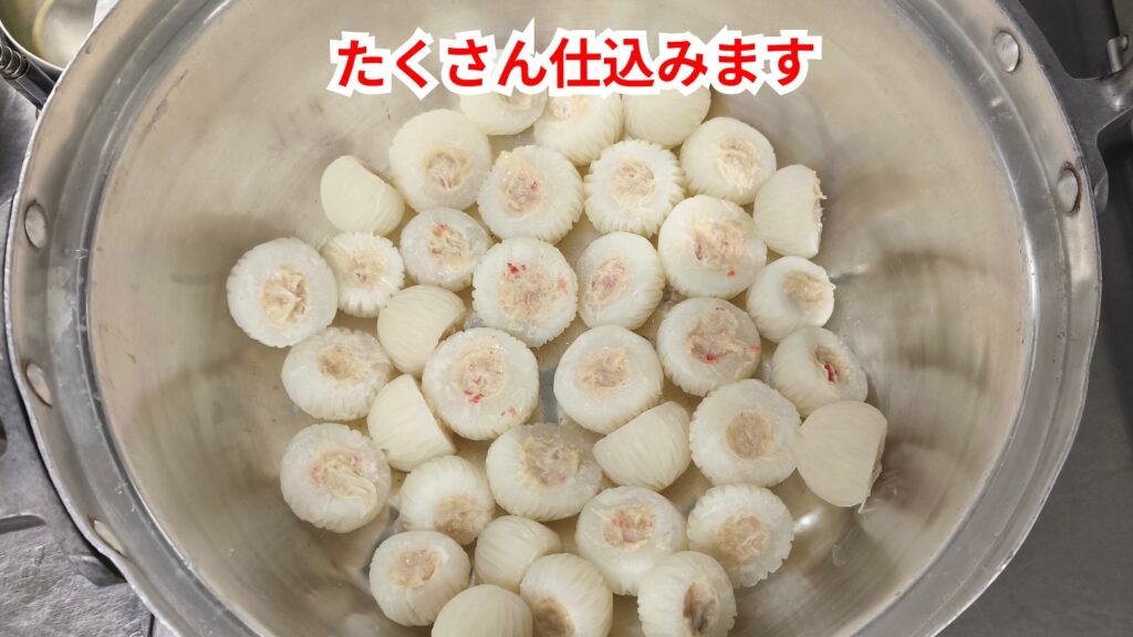 彫刻刀で彫って、形を作っていくんですね。ただでさえ蕪は煮崩れしやすくて、炊くのが難しいのに。