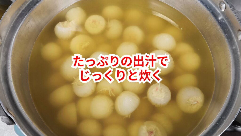 出汁をたっぷりと注ぎ、じっくりと味を含ませます。